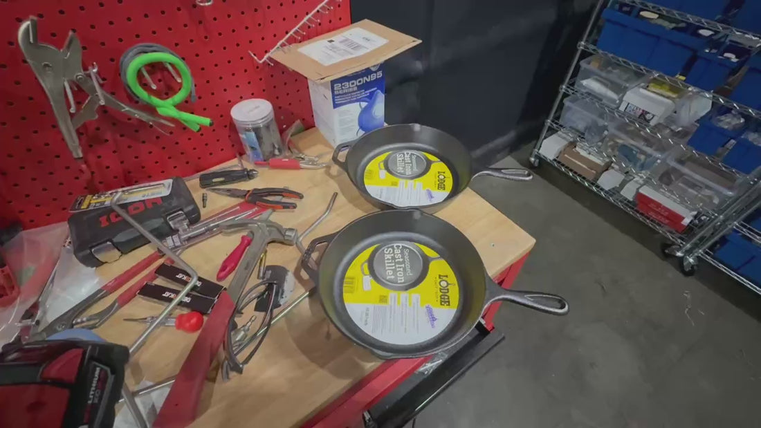 The big guy! This 15 inch pan holds anything. This is how you insert a PoulTree Gobbler Turkey Rod into a Lodge 15" cast iron skillet with some easy quick tips to show you do it correctly.