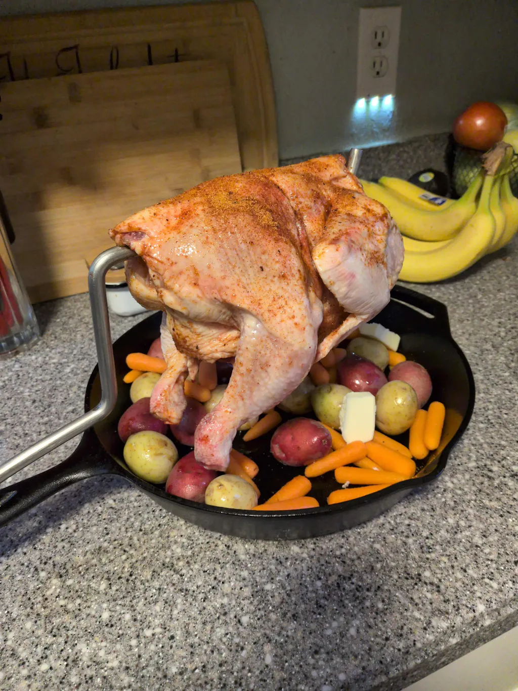 Looked like nothing more than a bent piece of metal, but I love me a good gadget, so I took the plunge. Its amazing! Perfect rotisserie chicken without the rotisserie. My cast iron needed maybe 3 twists of the auger for it to fit, and I have since made a perfect chicken in my oven and on the pellet grill. Solid product!